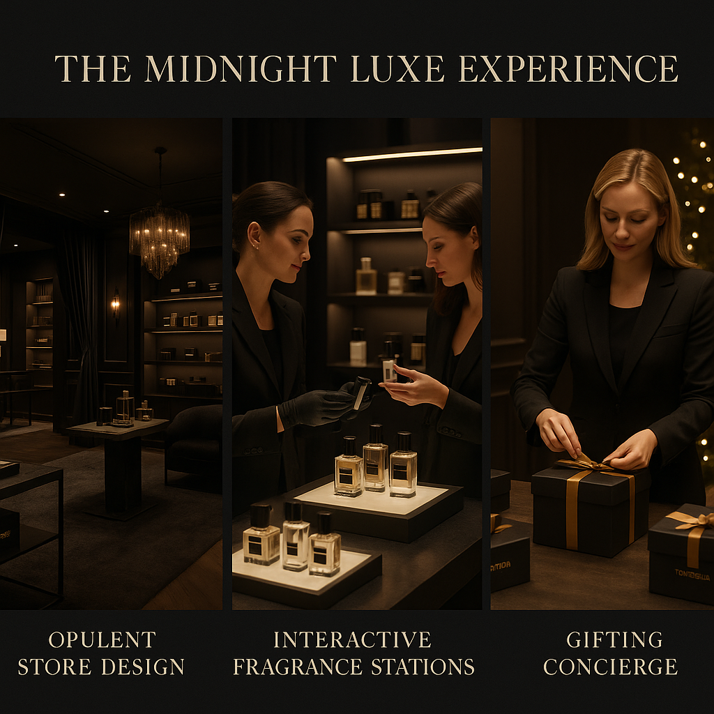 - Social Media Engagement: Encouraging customers to share their pop-up experiences via Instagram using the hashtag #MidnightLuxe, with selected posts receiving exclusive Tom Ford gifts.